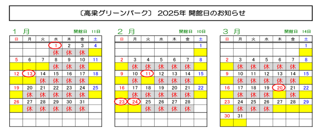 2025年1月~3月営業カレンダー(土日、祝日open)