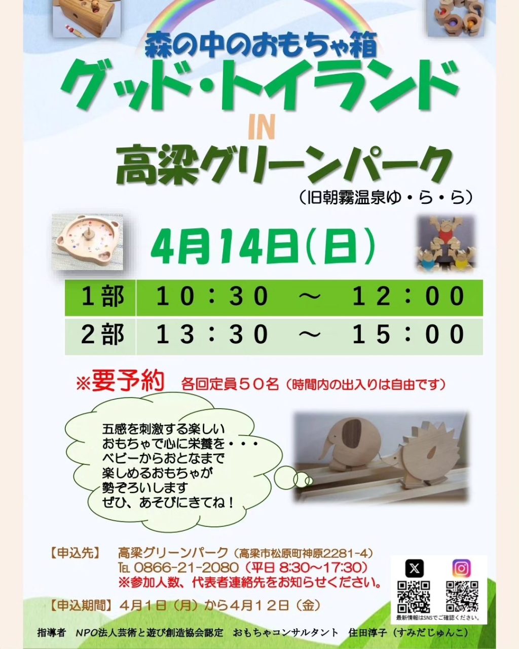 以下の日程で森の中のおもちゃ箱グッド・トイランドin高梁グリーンパークを開催します。